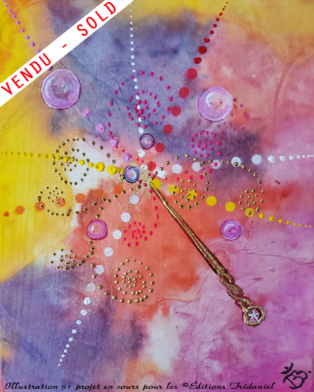🌈 CRÉATION (24 X 18 cm, technique mixte et “feuille d’or” sur bois) illustre un des 54 thèmes qui viendront vous parler d’Amour ❤️ avec le 4ème de nos grands oracles.