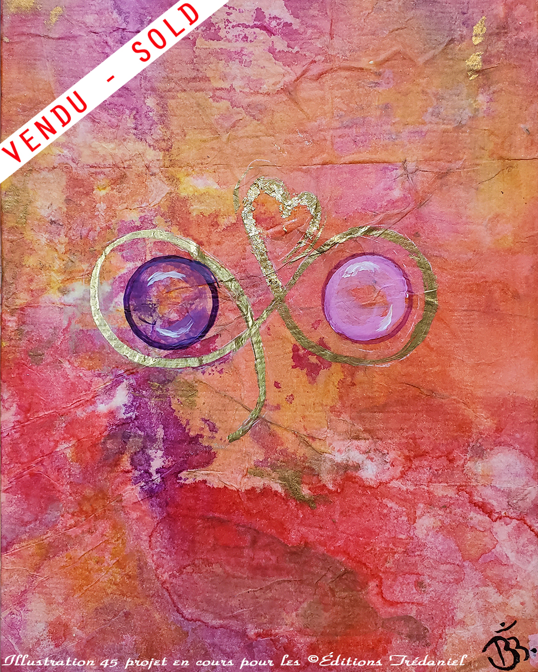 ♾ KARMA (24 X 18 cm, technique mixte et “feuille d’or” sur bois) illustre un des 54 thèmes qui viendront vous parler d’Amour ❤️ avec le 4ème de nos grands oracles.